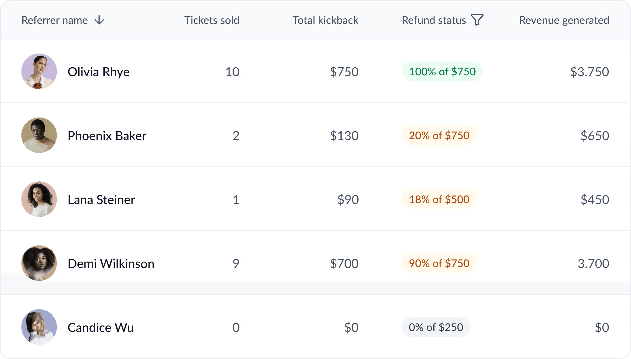 Real-time dashboard showing referral performance, conversion, and ROI.