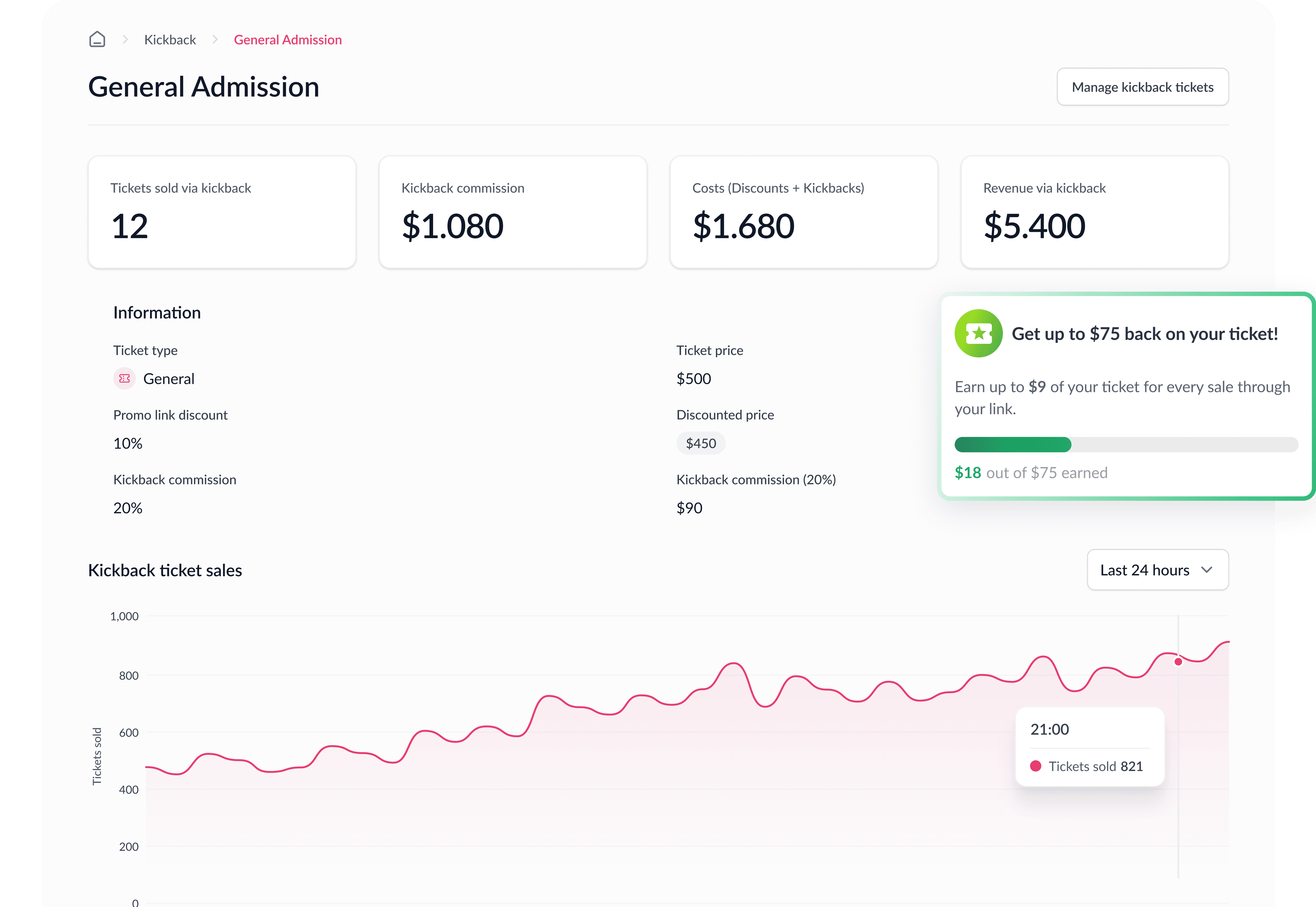 Tickets sold via Kickback
