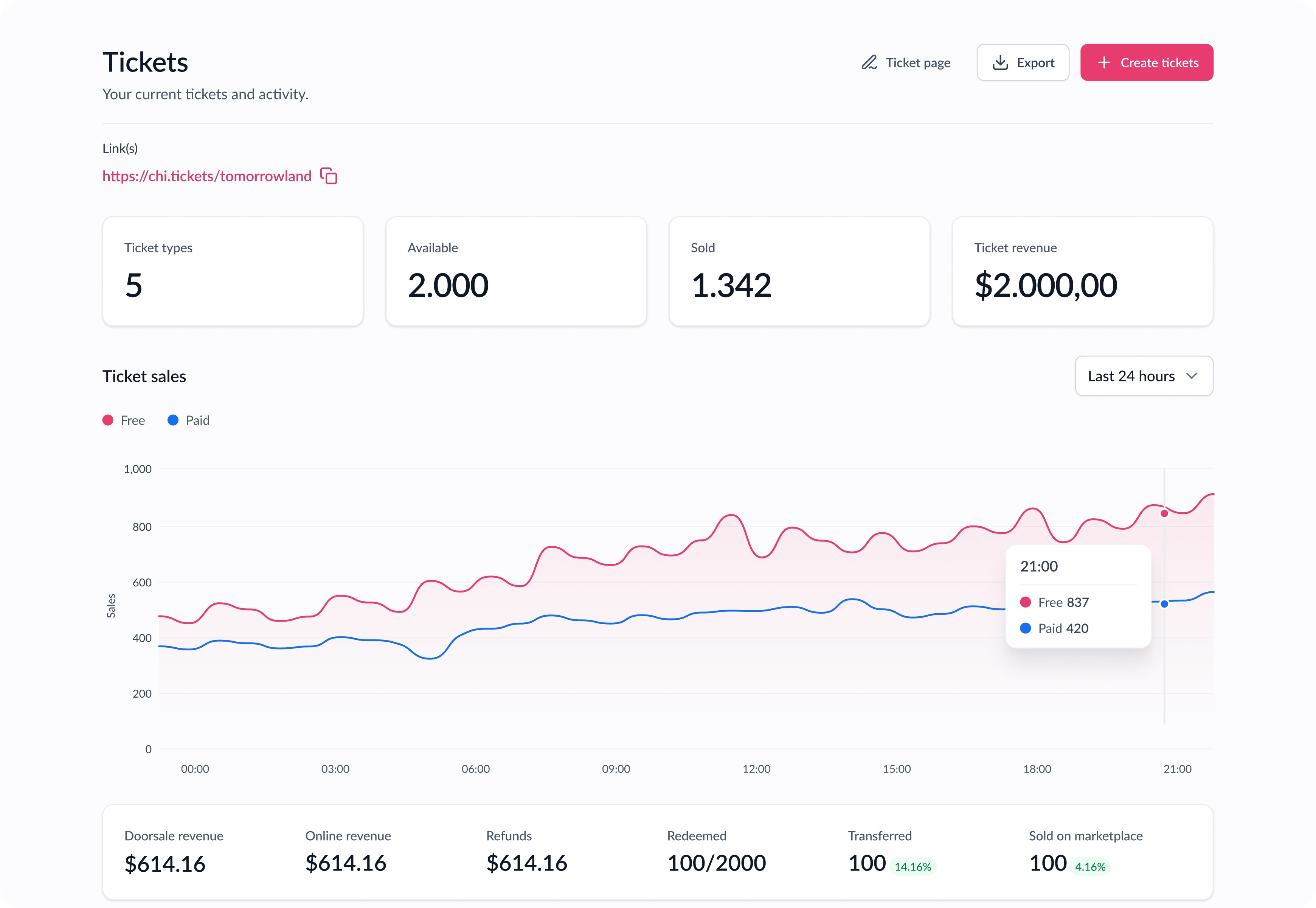 Launch Fast. Adjust Faster. Ticket types, mini-site, doorsale, and analytics in a single view.