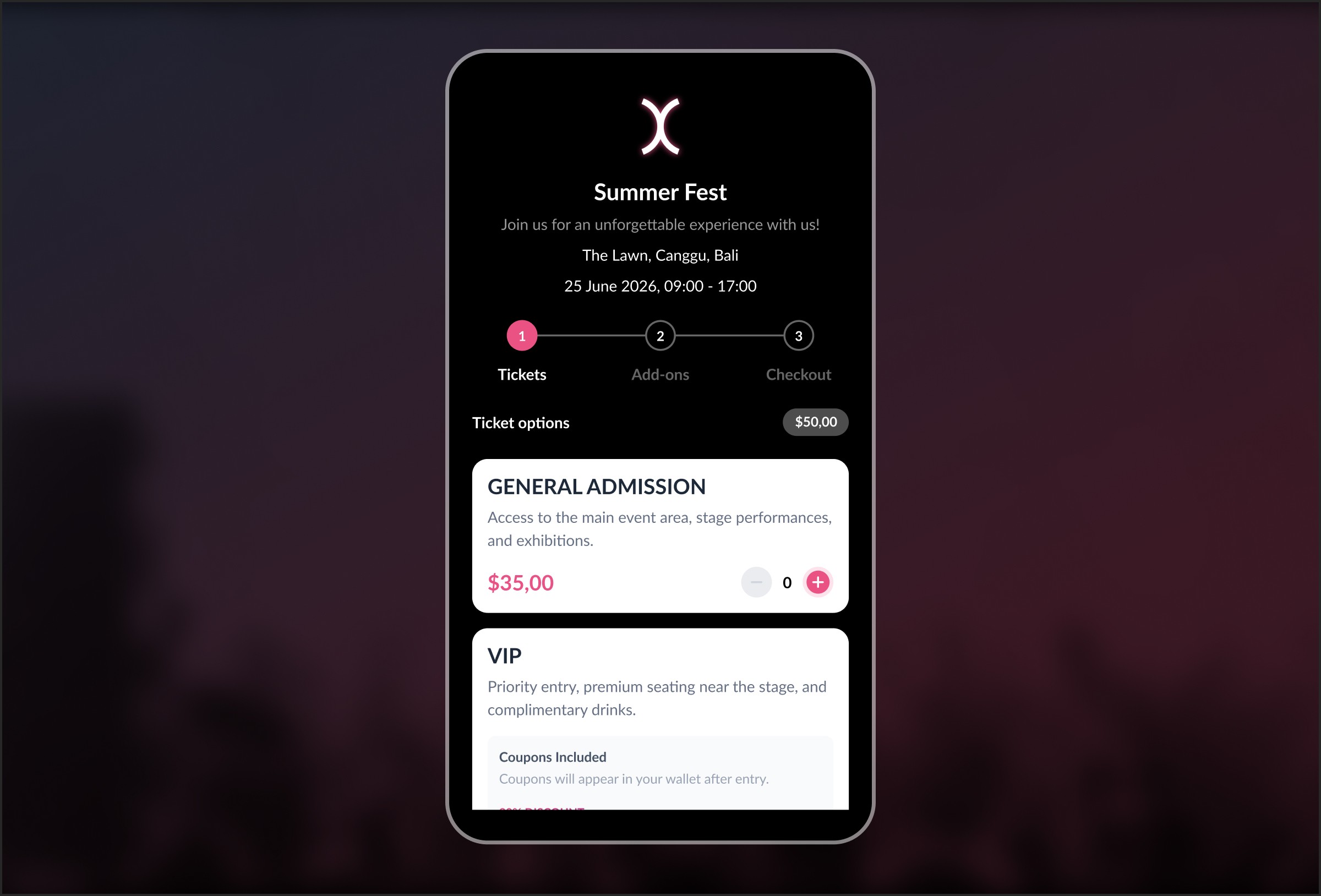 Pick from multiple ticket options and add-ons, quickly and easily.
